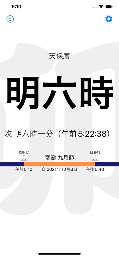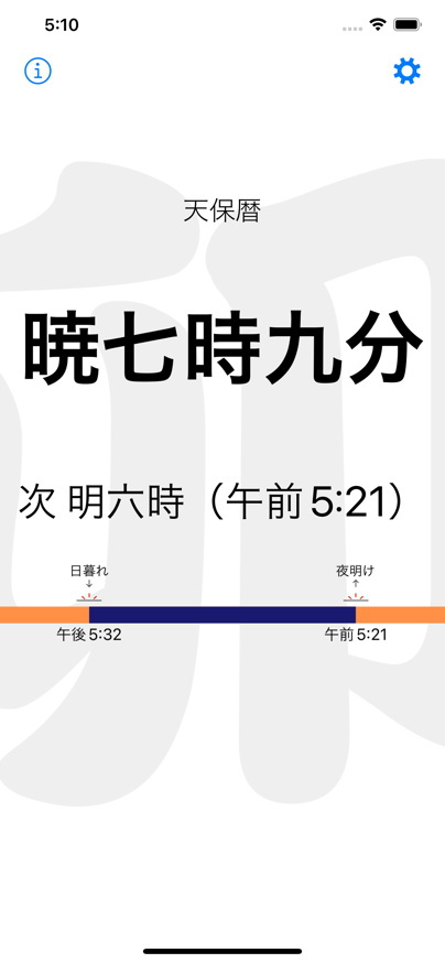 This app is a Temporeki clock. The Temporeki is a temporal hour system that was primarily used in the late Edo era (1844–1872). The app proves invaluable when reading Japanese historical documents, adjusting Japanese clocks (Wadokei), or recreating the lifestyle of ninjas and samurais, among other apps.