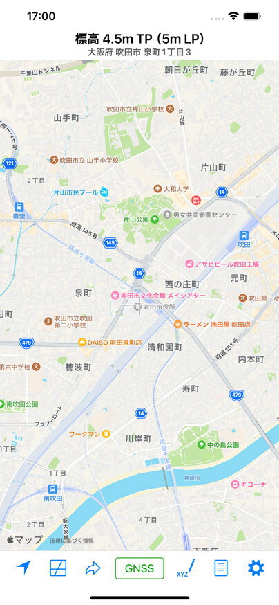 iPhone 4S以降は衛星測位システムを用いた位置情報サービスにAssisted GPS(A-GPS)とGLONASSが利用されますので,本アプリもGPSではなくGNSSと表記しています。なお,iPhone 7からはQZSSもサポートされています。