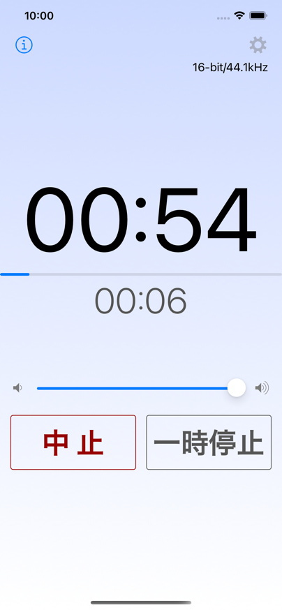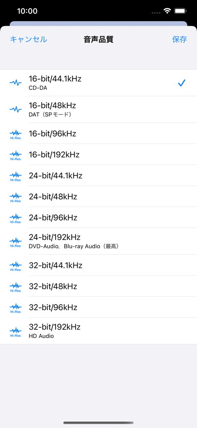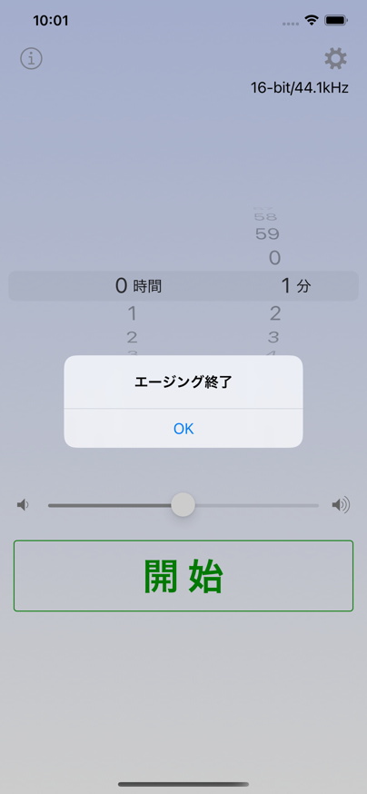 iPhoneとエージング対象機材を接続し,ピンクノイズを通常音楽を試聴する音量で一晩(数時間)流し続けてください。エージング時間に100時間や1000時間の設定もできますが,基本的には研究開発用となっています。なお,再生音源にハイレゾオーディオを設定できますが,Bluetooth接続などプロトコルによってはダウンサンプリングされることに注意してください。また,iPhoneを用いた内蔵スピーカの再生は最高16bit/48kHzとなっており,これを超えるハイレゾサウンドはダウンサンプリングされますのでご注意ください。