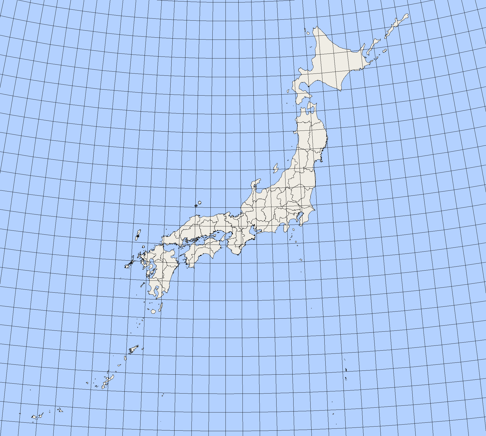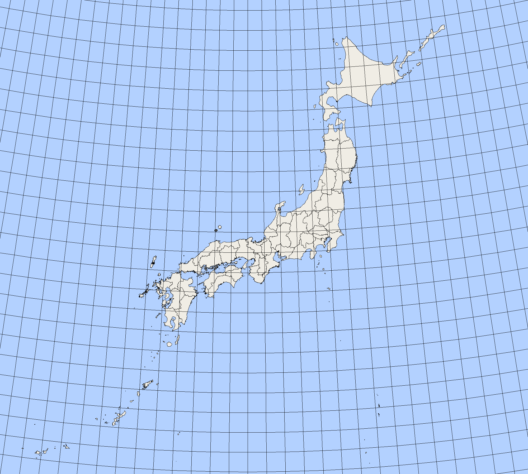 (標準緯線:北緯33°・44°,中央経線:東経135°)