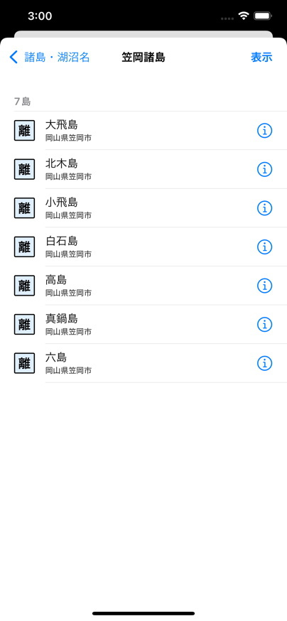 | v1.3 2016年5月3日 | 島しょ情報の改訂(平成27年面積調の反映) リスト検索島しょのみを表示する機能の追加 バグの修正 |