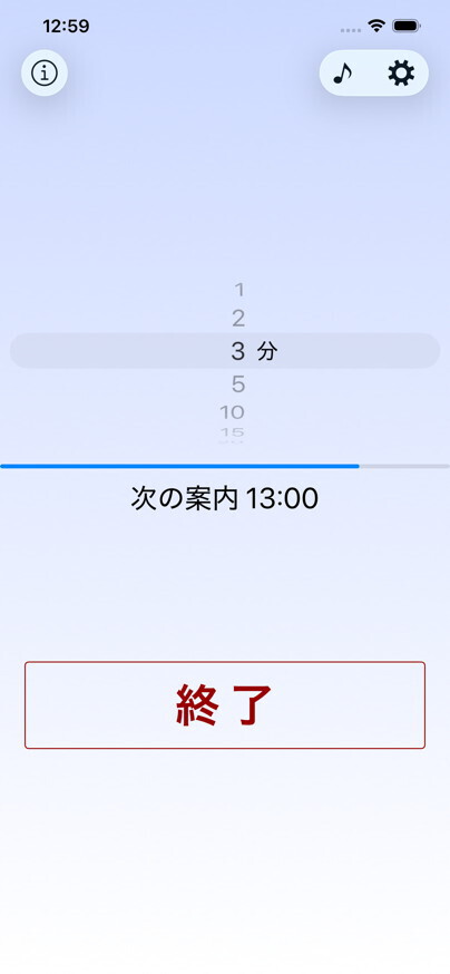 | v2.0 2013年9月26日 | iOS 7に対応 フォアグラウンドの音量を「着信音と通知音」の音量に変更 バックグラウンド使用時に最終通知を事前案内するよう修正 |