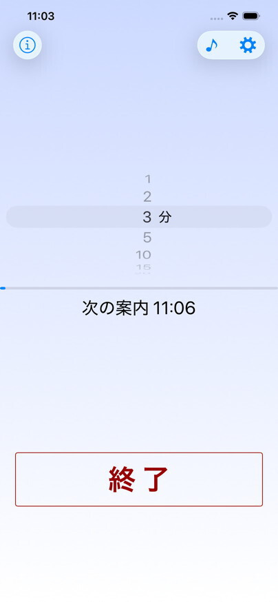 | 音声テスト(音符ボタン) | 現在時刻を案内します。タップしても音声が流れない場合はサイレントモードになっていないか,着信音と通知音がミュートになっていないか確認してください。 |