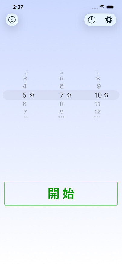 通常モードでは経過時間の案内を5秒間隔5分間から10分間隔10時間までの10種類から選択可能です。プレゼンモードでは学会発表でおなじみの一鈴,二鈴,三鈴の時間が設定でき,通知音声はコールベル(呼び鈴)になります。デフォルトでは5分,7分,10分が設定されています。音量はiPhone本体設定の「着信音と通知音」と共通です。音声が小さいと感じる場合は,本体の「着信音と通知音」の音量を大きくしてください。
