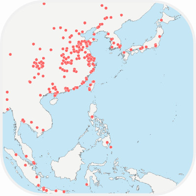 | v1.0.5 2021年12月10日 | 追加都市 キルギス:ビシュケク(首都) ケニア:モンバサ タイ:ウドーンターニー,ウボンラーチャターニー,コーンケン,スラートターニー,スリン,ソンクラー,チエンマイ,チエンラーイ,ナコーンシータンマラート,ナコーンパトム,ナコーンラーチャシーマー,ノンタブリー,パトゥムターニー,ブリーラム,ローイエット ベトナム:カントー,ダナン,ハイフォン モザンビーク:マトラ モロッコ:サレ,タンジェ,マラケシュ 削除都市 チリ:サンティアゴ(首都) 名称変更 バングラデシュ:チョットグラム(Chattogram,旧名・チッタゴン) 修正 中国:錫山市(無錫市錫山区) 代表点の修正 その他細部修正 |