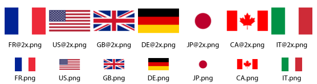 ファイル名は収録の国コード(code)はISO 3166-1 alpha-2に準拠したものにしていますが,コソボは国コード未設定であることからアマノ技研が独自に設定したコードを付与した名称(KS.png,KS@2x.png,KS@3x.png)になる点ご注意ください。研究利用,商用利用とも無料です。
